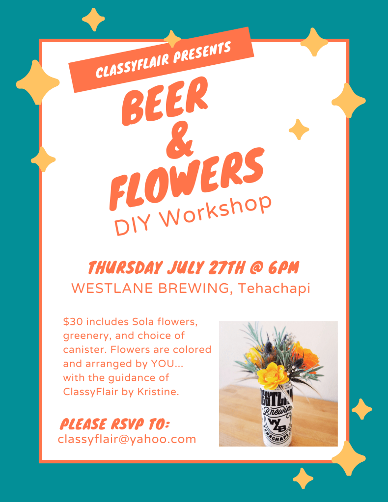 Join me for a crafty DIY workshop at Westlane Brewing, Tehachapi CA.