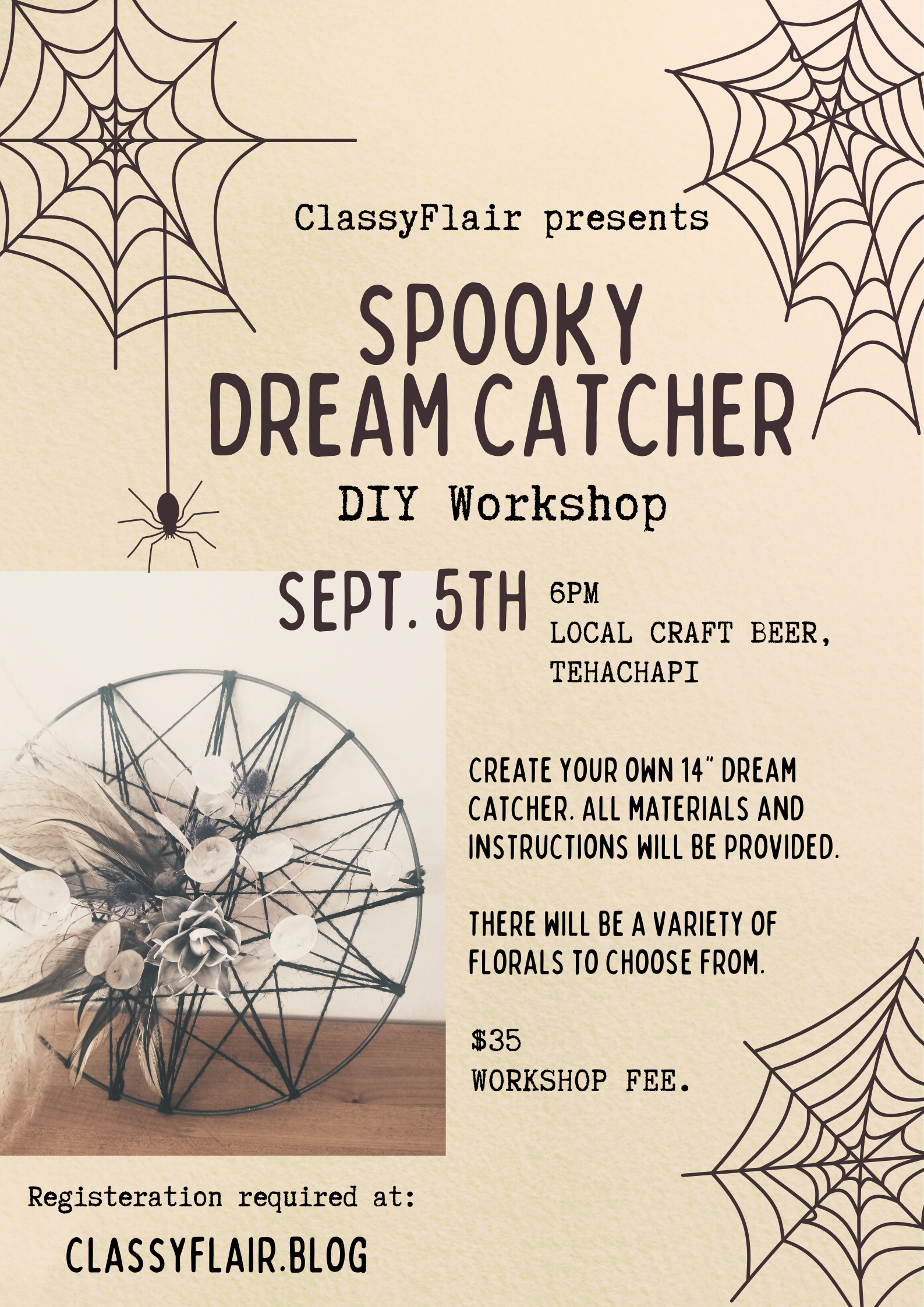 We will be crafting 14″ circular dream catchers to look like spider webs. I will bring a variety of dried florals and feathers to choose from. I can also show you how to paint some Sola wood flowers to include in your design.