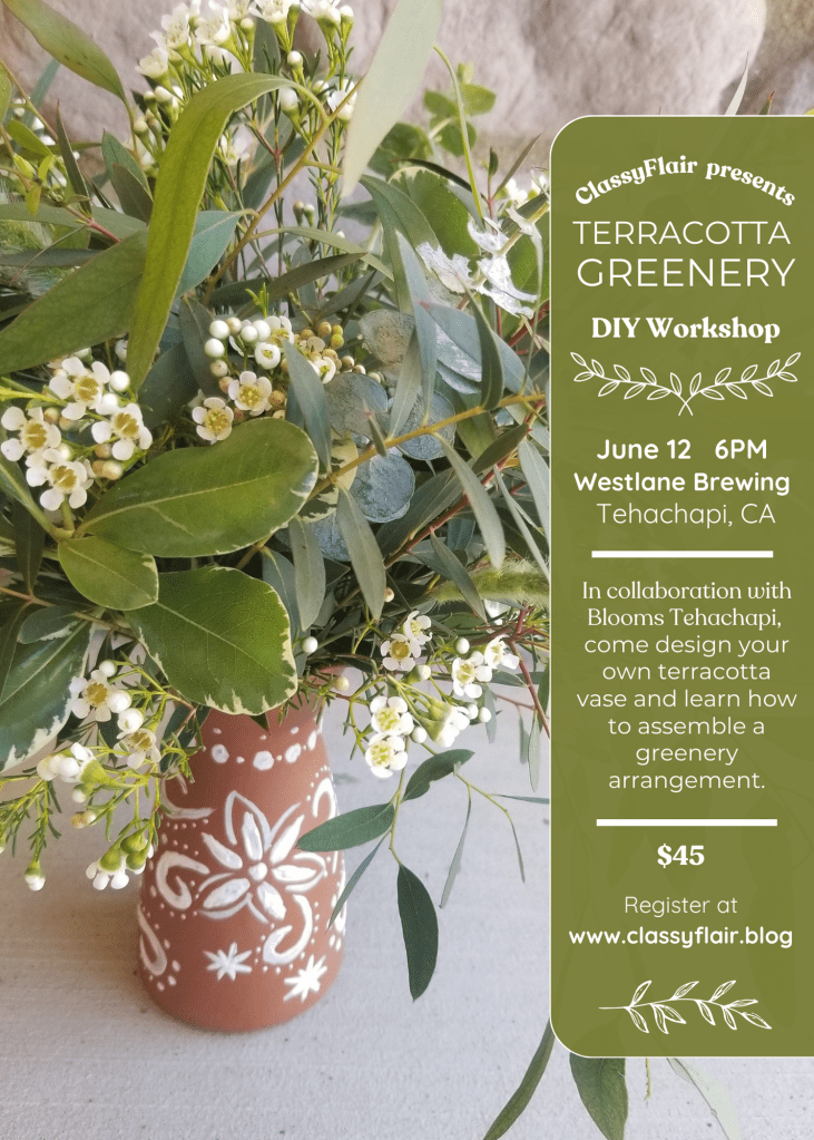 This is a collaboration workshop with ClassyFlair by Kristine and Laura of Blooms, Tehachapi