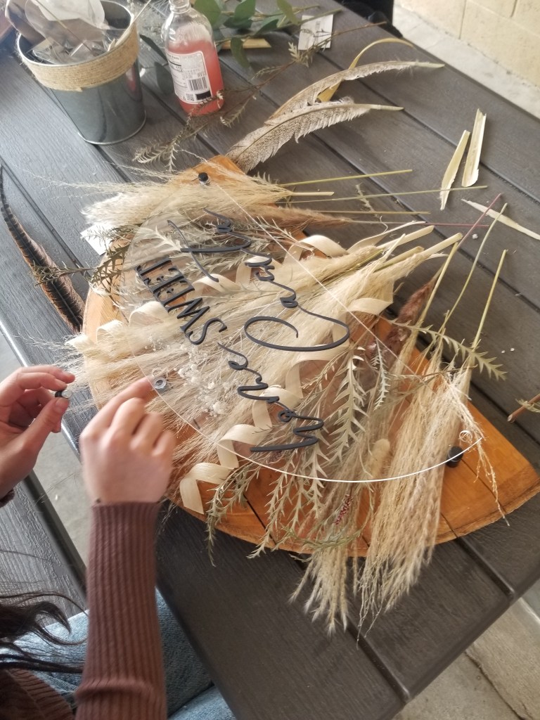 Come decorate a wall hanging wine barrel top with boho-style dried florals and a quote of your choosing (upon registration). All supplies included.